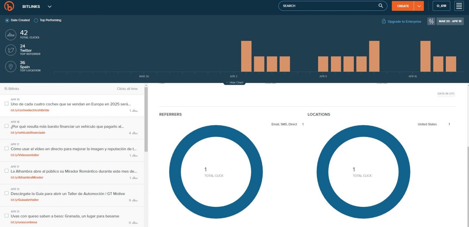 Bitly se ha convertido en algo más que un acortador de URL’s. Es muy utilizado en las redes sociales ya que además de ahorrar espacio mejora la estética del tuit o del post. También, permite publicar en Twitter y Facebook de manera automática sin tener que abandonar la página y ver el impacto de las publicaciones a través de estadísticas (cuántas visitas ha tenido y a cuánta gente ha llegado).