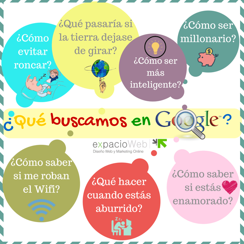 ¿Has pensado alguna vez que buscamos en Google? En este post te ahorramos el trabajo de investigación porque compartimos contigo algunos de los temas más tecleados por los españoles. Quizás te reconozcas en alguna de estas preguntas o tal vez nunca se te pasaron por la cabeza, pero lo cierto es que los asuntos que nos preocupan son diversos y, por qué no decirlo, variopintos.